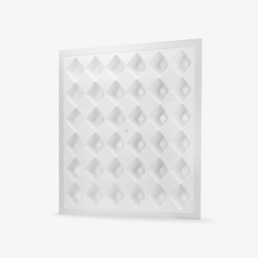 - Choá phản quang nhựa Nanophase dạng lưới, giúp giảm chói lóa, đạt chỉ số UGR ≤ 19.